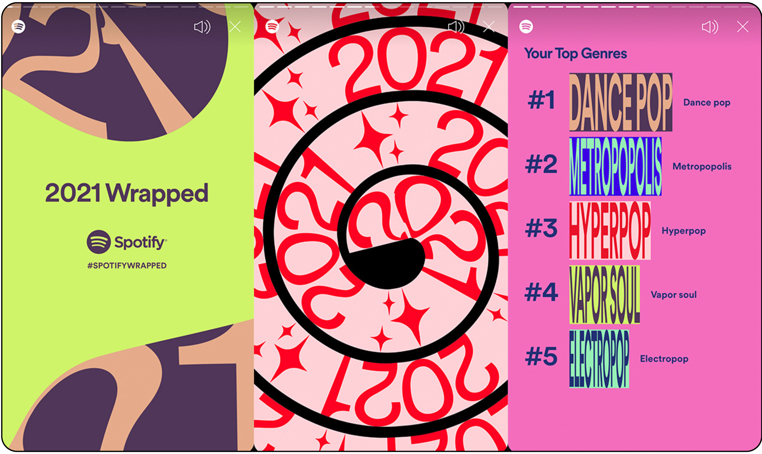 Fiz meu Wrapped na época e achei tudo o máximo. Finalmente um design para ficar na memória! Uma aplicação tipográfica ousada e inesquecível, já que a própria tipografia precisou de uma legenda. Não é comum você se deparar com uma tipografia tão distorcida a ponto de se tornar uma ilustração, uma imagem que não se lê mais.